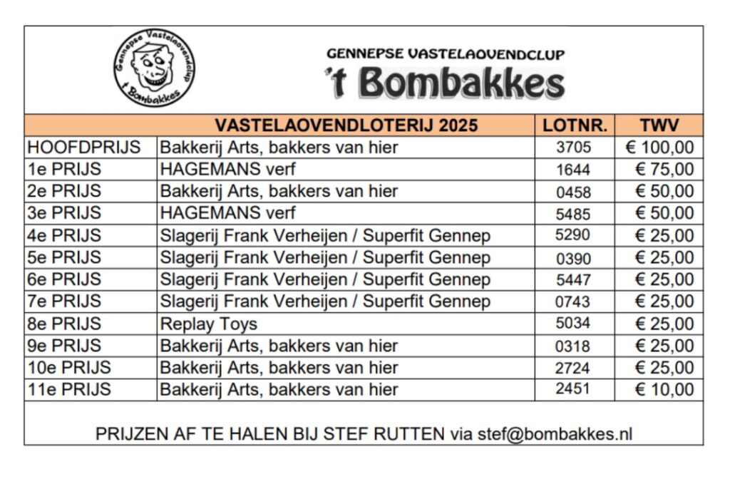 Vastelaovend klup ’t Bombakkes.