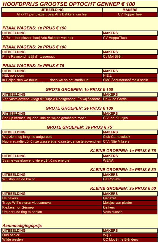 buuk en als ’n bok en ‘n kat dor de optocht. Mit de tekst : D’n buuk, d’n Bok en d’n Kat, zörge vör de grint en ‘t zand uut elk gat.